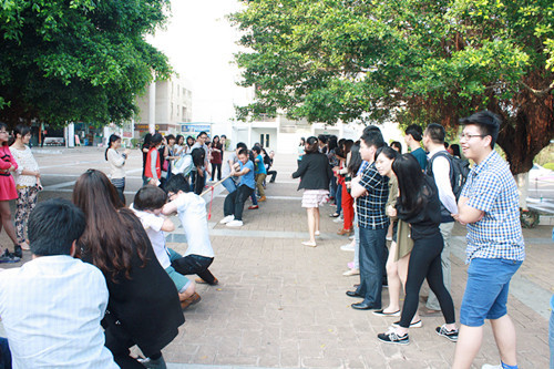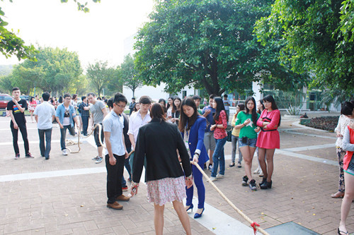 稍事休息后,第二场比赛开始了:英语51班对英语52班,在一片呐喊声中,英语51班取得了第二场比赛的胜利。