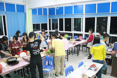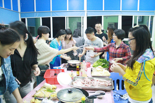 饭堂洗漱间传来阵阵欢声笑语,那是我们负责前期准备的同学在洗菜呢:各种蔬菜,肉食……