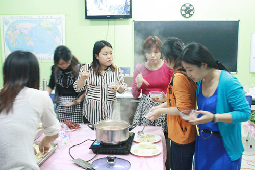 这一天的英语58班,比平时拥有更多惬意的时光。当下课铃声响起的时候,他们在老师的带领下,走出教室,享受下午的午后暖阳,紧接着,他们又奔赴另一场更加隆重的盛宴——美食大杂烩。在IBS,每个班都是一个大集体,大集体中的每个成员都在齐心协力共同营造着这家一般的温暖。