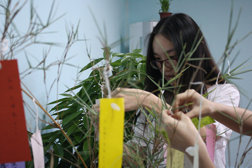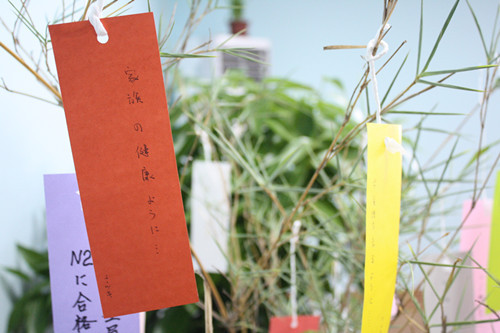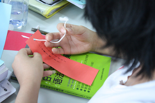 沙龙活动的高潮是学生自己亲手写下心愿,然后把心愿的纸条挂在竹枝上。神明是否在为实现愿望而忙个不停?学生们的愿望是五彩缤纷的,有希望考级通过、有祈福家人身体健康、也有真心想在富有情境的校园交到男女朋友……席勒说:有愿望才会幸福。那就快点来许愿吧!不管多么离谱的愿望,我们都希望能够实现。