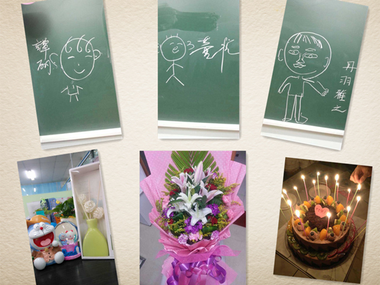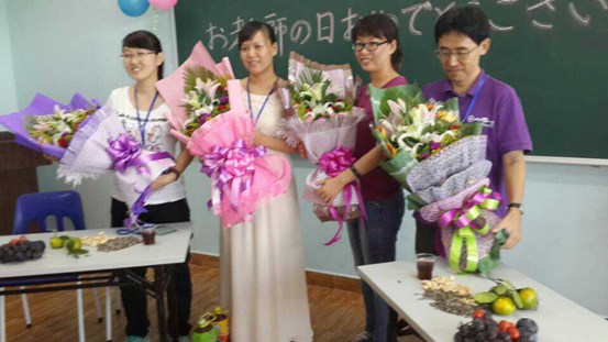 而在英语部这边的办公室也洋溢着节日的气氛,学生们双手持着鲜花礼物穿梭在各个办公室,当他们走向老师,并真诚的祝福:“老师,祝您节日快乐!”老师们的内心充满着激动与喜悦。