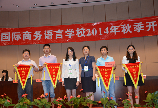 教研室主任陈枫珍老师和教务主任孙静老师与荣获“2014年度优秀班集体”称号的班级代表合影留念
