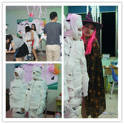 为了更好营造节日气氛,IBS英语班学生别出心裁,除了布置鬼屋、购置道具,还准备了丰盛的美食,除此之外,层出不穷的游戏花样百出:假面舞会、心有灵犀、制作木乃伊、咬苹果、天黑踩气球……总有一款让你意犹未尽,玩的就是激情,要的就是心跳。