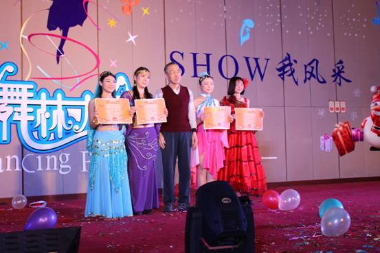 首先,公布优秀奖:英语71班健美操《Everytime we touch》、英语63班拐杖舞《Chi hua hua》、英语76班群舞《Crazy kids》、英语73班群舞《小苹果》、英语70班群舞《圣诞狂想》