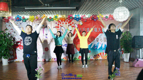 艺术氛围,余音绕梁,伴随那柔软的歌声,轻轻地拨动着我们的心怀。比赛在活泼可爱的《おどるポンポコリン》开场曲下拉开帷幕,上门裕子老师身着可爱小红裙梦,玲珑的身段仿若小丸子出现在我们眼前,领着众多学生一起欢快起舞。