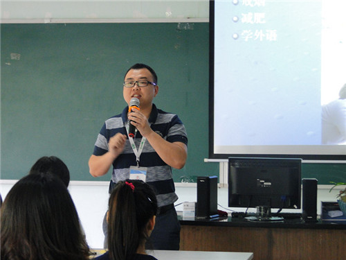 压轴上场的是宋键校长,宋键校长以开放互动的方式把“世界上最难的三件事?”抛给了新同学们,在小伙伴们五花八门的答案中,宋键校长给出了自己的答案,他自嘲道“减肥、戒烟、学外语”是他觉得最难的三件事,并通过这个作为切入点引出“改变”这个主题,倡导改变学习的态度、改正学习的方法,还特别指出了坚持的重要性。宋键校长以幽默风趣的语言风格赢得台下小伙伴们阵阵掌声,果真是幽默的校长最有魅力!