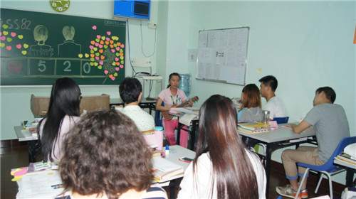 在Celia老师简单的开场白后,班会正式开始。终于到了激奋人心的时刻,Celia拿出了小编期待已久的乌克丽丽,为小伙伴们深情地弹奏了《you are my sunshine》、《一个像夏天一个像秋天》及taylor swift的《love story》,台下的熊孩子们都安静了下来,静静地欣赏着乌克丽丽清新优美琴声与Celia老师柔和动听歌声恰到好处的融合。