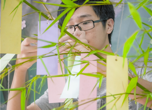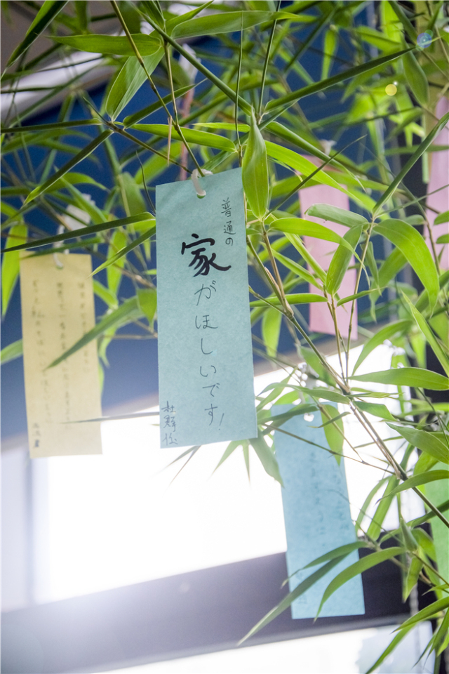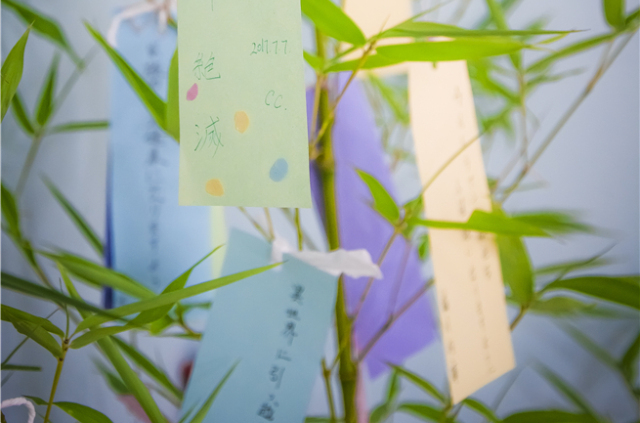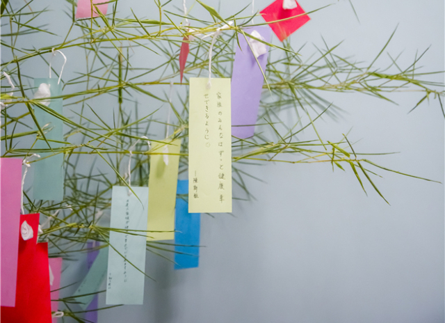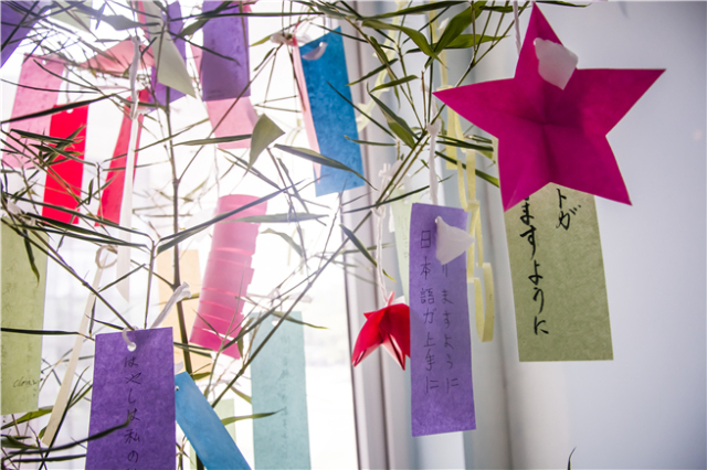 日本七夕节与中国的七夕节不同,主要不是用来祈祷得到爱情,而是祈求姑娘们能拥有一身好手艺。每年这个时候,大人和孩子都会聚在一起,在五颜六色的长条诗笺上写下愿望和诗歌,连同用纸做的装饰品一起挂在自家院内的小竹子上,以此请求织女星保佑自家女孩的书法、裁衣等手艺能有所进步。