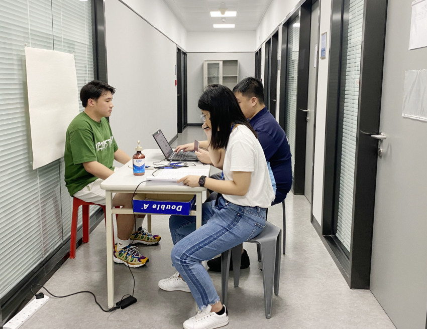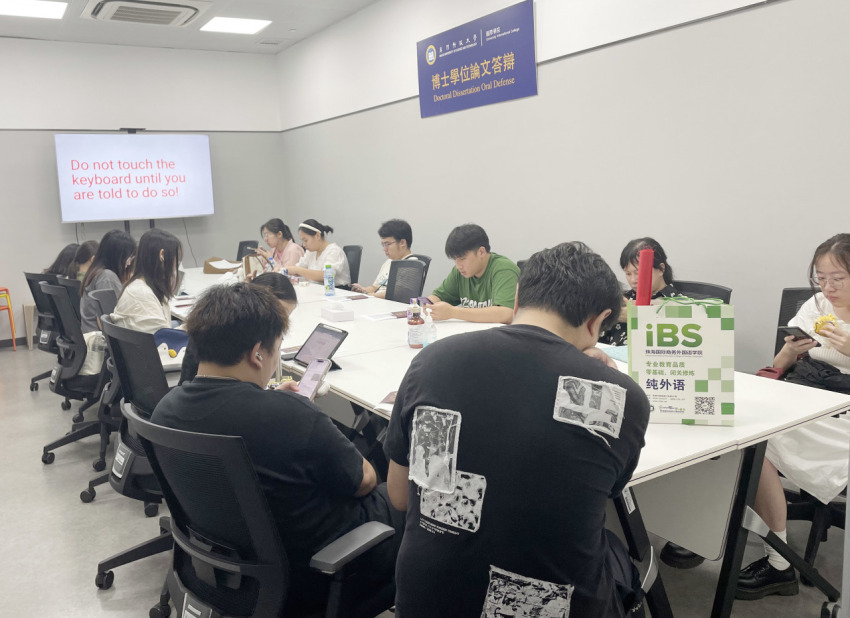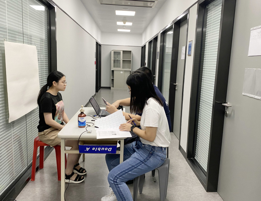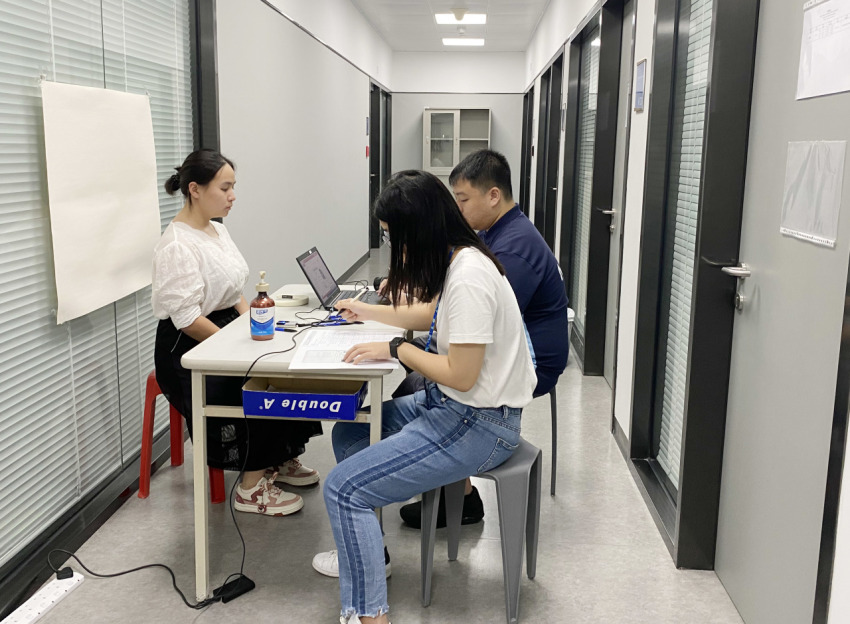 来到澳门科技大学考场后,学子们在考场老师的安排带领下,在会议室里进行考前注意事项、考试流程等培训。