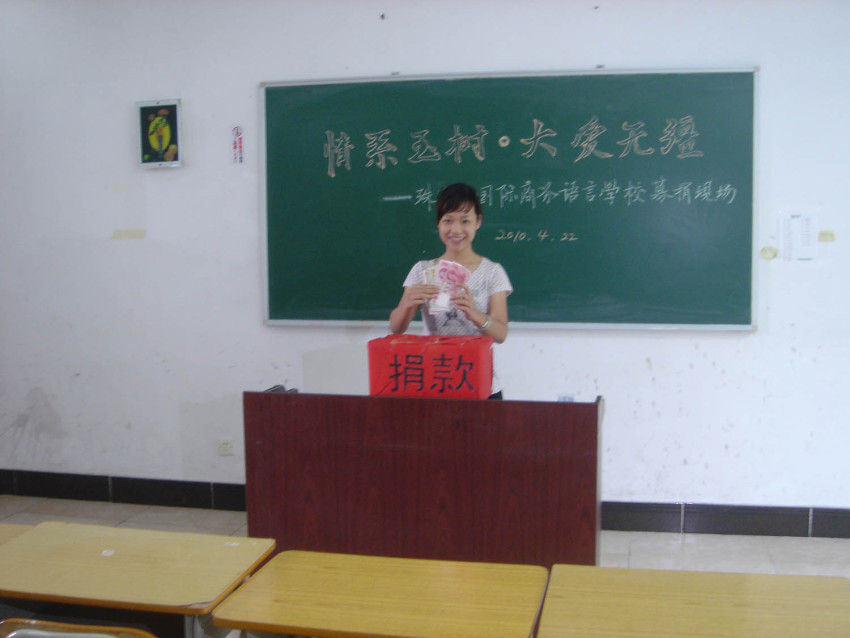 为支持受强烈地震灾害的青海省玉树藏族自治州玉树县灾区做好抗震救灾工作,珠海市国际商务语言学校(IBS学校)全体师生在班主任的带动下,举行名为"情系玉树.大爱无疆"募捐活动,全校师生纷纷加入募捐活动,4月22日现场已募得善款3786.5元,该笔赈灾捐款将通过相关机构直接支援灾区人民度过难关。