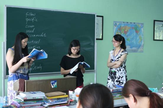 一是实施“先学后教”。以导学和课前预习的方式,为课堂教学建构一个前置性平台。如,商务口语课的对话翻译,要求学生自己先翻译。两个人的商务对话是学生课后去准备,上新课时让学生在讲台上模拟演绎,之后,教师在讲评需要改进的地方。这里,强调教师有时还要转变角色,走下讲台俯下身子,以服务者、促进者的身份积极参与到学生的学习中来,打破以往教师主动学生被动的单一教学模式。