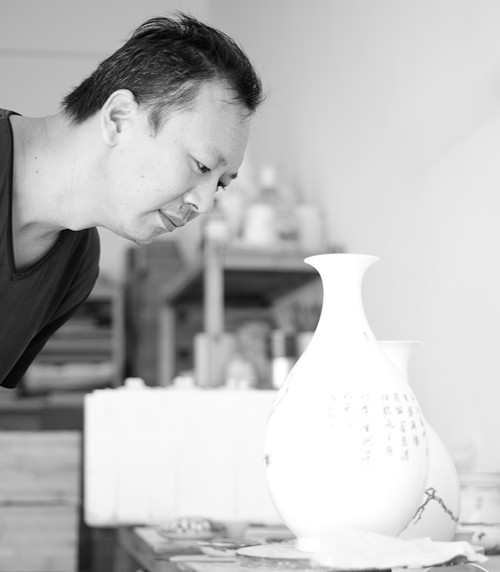 自在友人诱惑至珠山画下第一件瓷器以后,珠山千年,魅力四射,历久不衰,有其独特之美,但纵观千年,珠山亦非往昔。在工艺至上的现珠山,看不到珠山千年存在的独特魅力了,昌南九老之后,珠山前进滞步。我之爱画瓷,一如爱画,珠山之友,皆为瓷而画,各人大同小异,我之画瓷,乃追求瓷上作品能接近纸绢上之感,所谓中得心源。”