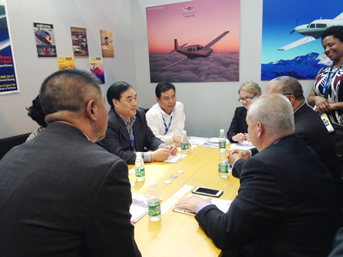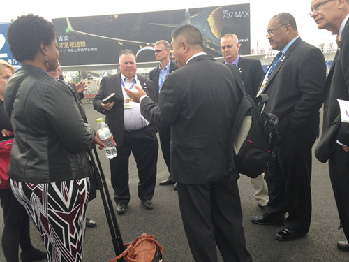 傍晚,美国威奇托市政府和航空事业机构代表团结束在珠海的参展行程。临行前,代表团的每个成员一一与翻译团成员握手,诚挚地表示感谢并合影留念。