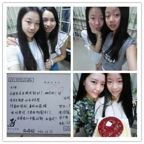 2014年11月23日新生报到,从第一句话开始,她们就开始结缘。转眼间已经一个半月了,由于大家来自不同的地方,有着不同的生活习惯及方式也难免会有些摩擦,甚至小的误会,但彼此都可以相互体谅了解,和平相处。下面就由美丽动人的Grace给大家介绍她们的家庭成员。