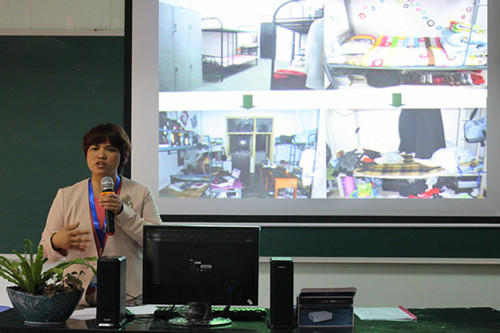 寝室是同学们生活的地方,也是同学们最为关心的地方。宿舍东西坏了怎么办、毕业了想要退宿舍怎么办……这些问题的答案宿舍管理员崔卫琼老师都在她的PPT中给出答案。除此之外,她还用实例向同学们对比了脏乱差宿舍和优秀宿舍,每两个月评比一次,前三名的宿舍还可以获得现金的奖励。
