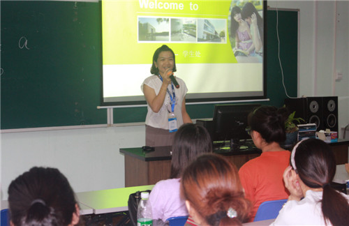 学籍管理,转降班要求、考勤制度、紧急情况联络指引等,廖爱老师代表学生处对以上与学生学习相关的规定作了详尽的说明,另外介绍了学校舞林大会、英语角、外语活动月等系列特色文娱活动,倾心为学生营造纯英语环境。