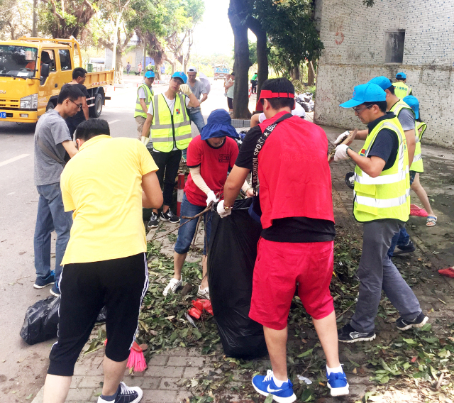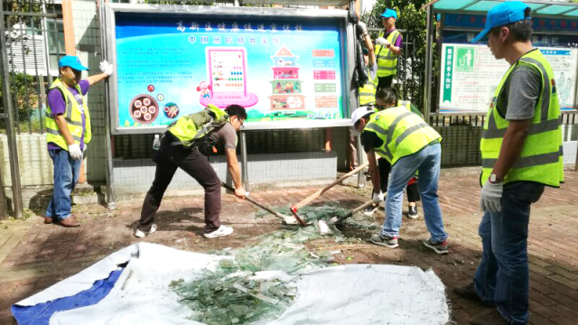 iBS志愿者们顶着炎炎烈日清理路面,修复社区环境。