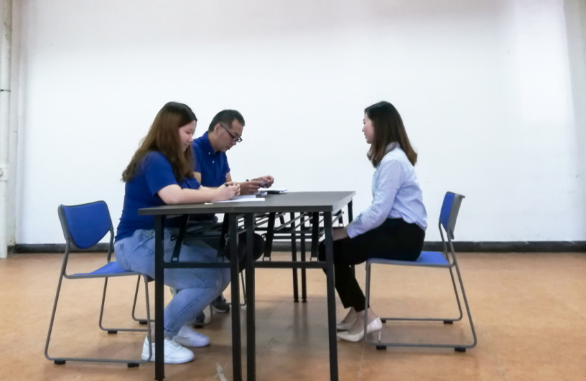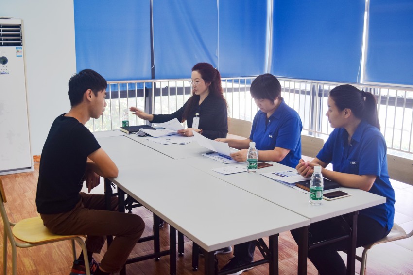 面试现场由小语种分院韩院长和东丽公司HR共同担任面试官