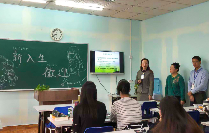 新生们认真聆听老师的讲话,在新的一年里,她们将集中精力,闭关修炼,完成日语学习之旅。