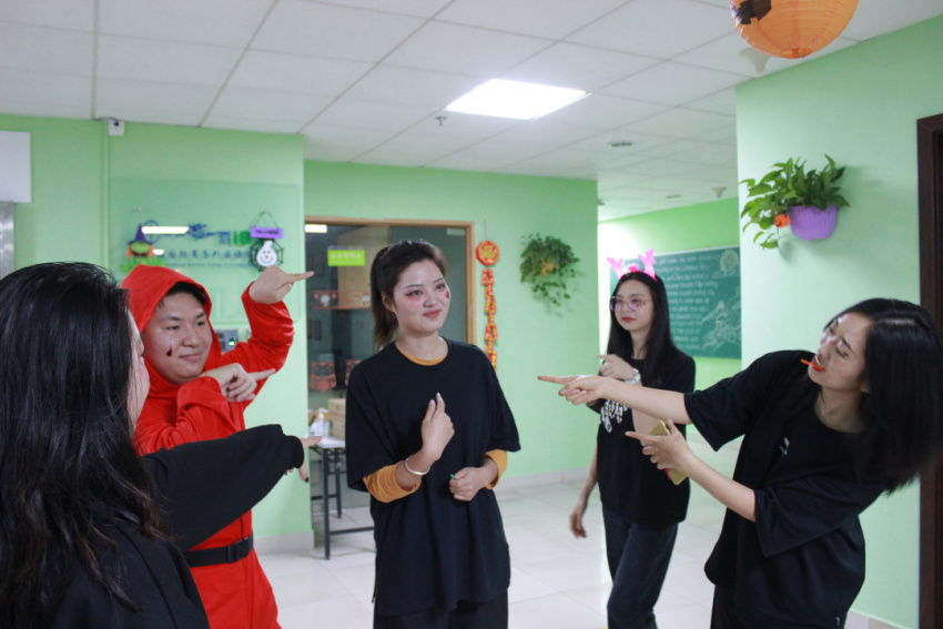 负责找南瓜的同学穿梭游走在各个“鬼”之间