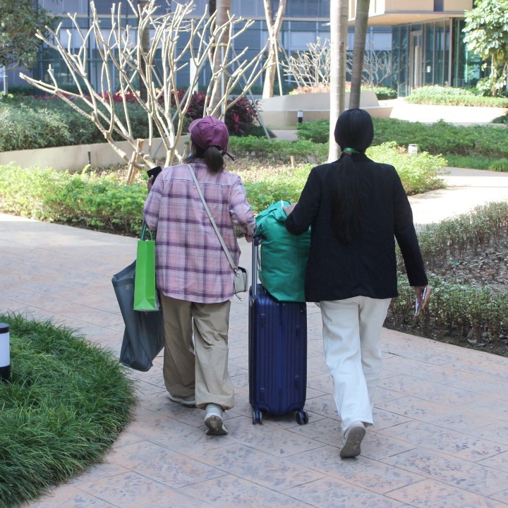 iBS老师热情地带领新生前往宿舍,为新生入学保驾护航