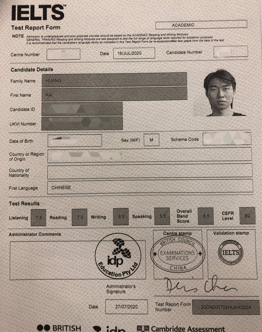 2020年8月7日,iBS的老师收到了19届毕业生Kevin送来的喜讯,他拿到雅思证啦,还是以6.5的高分一次性拿下了这优越的成绩,9月份即将备考读研出国学习深造,不可谓可喜可贺,令人兴奋。